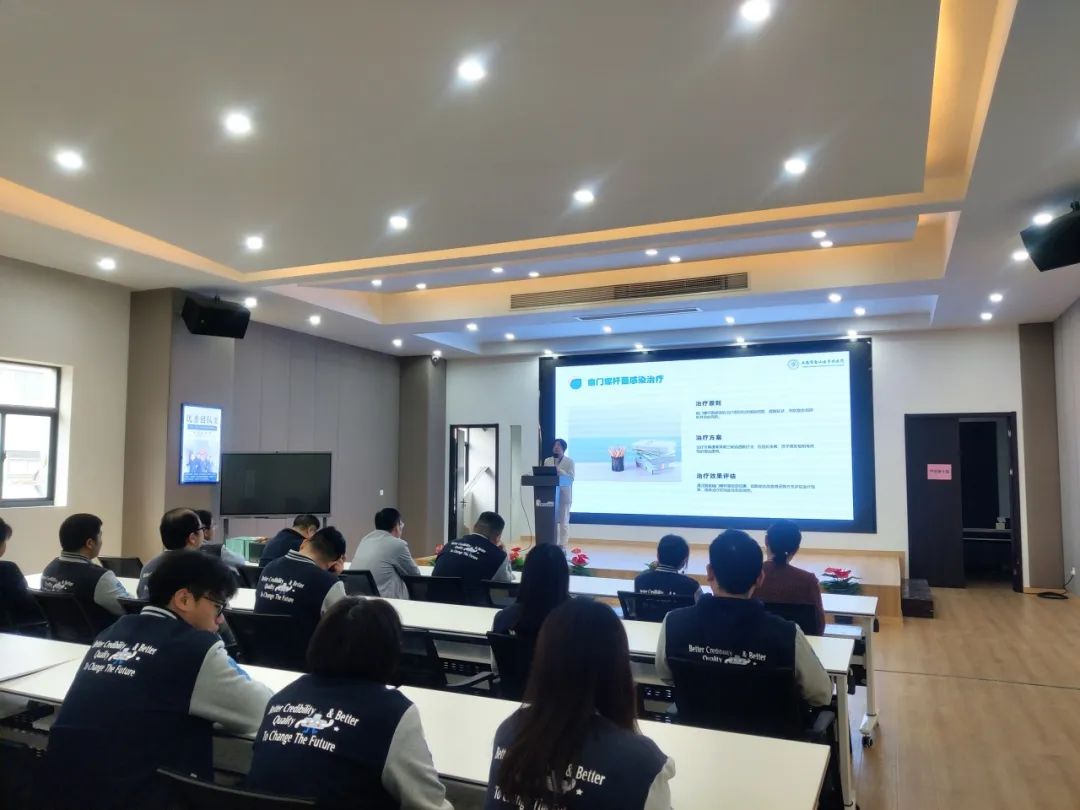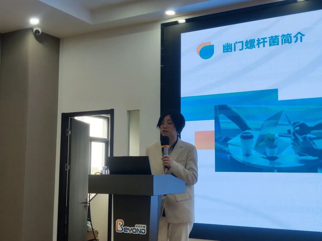 活动开始,会场充满了浓厚的学习氛围,健康管理医师胡莉莉向大家介绍了亭林医院及义工活动。 讲座还特别邀请了消化内科主任医师杨秀红主任亲临现场,杨主任凭借深厚的理论基础和丰富的临床经验,深入浅出地向在场的员工们讲解幽门螺杆菌感染与胃肠疾病分类预防方法。 最后,医生特意为我们播放了幽门螺杆菌检测方法小短片并与全场互动,更直观展现当今幽门螺杆菌检测的方便快捷,以此鼓励大家去医院体检时积极检测幽门螺杆菌项目。 通过此次义诊与健康讲座,我们期望能够点亮员工心中的健康明灯,提高大家的疾病预防意识,帮助大家在实现自我价值的道路上走的更加从容稳健,让本优每一位功臣的健康之路更加长远。